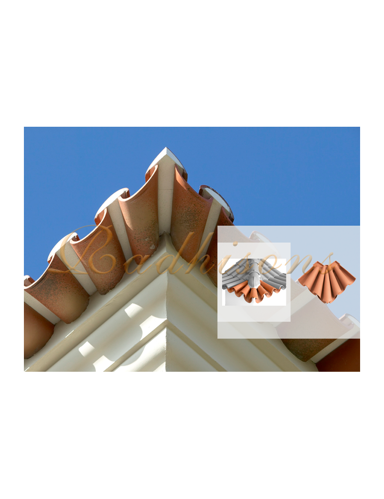 La caractéristique principale de la tuile Coin d'égout en finition arabe 40 est son design authentique qui offre une esthétique traditionnelle arabe exceptionnelle. Les motifs géométriques complexes et les détails élaborés qui caractérisent la finition arabe confèrent à cette tuile une présence visuelle remarquable, ajoutant une touche de sophistication et de charme à toute toiture.