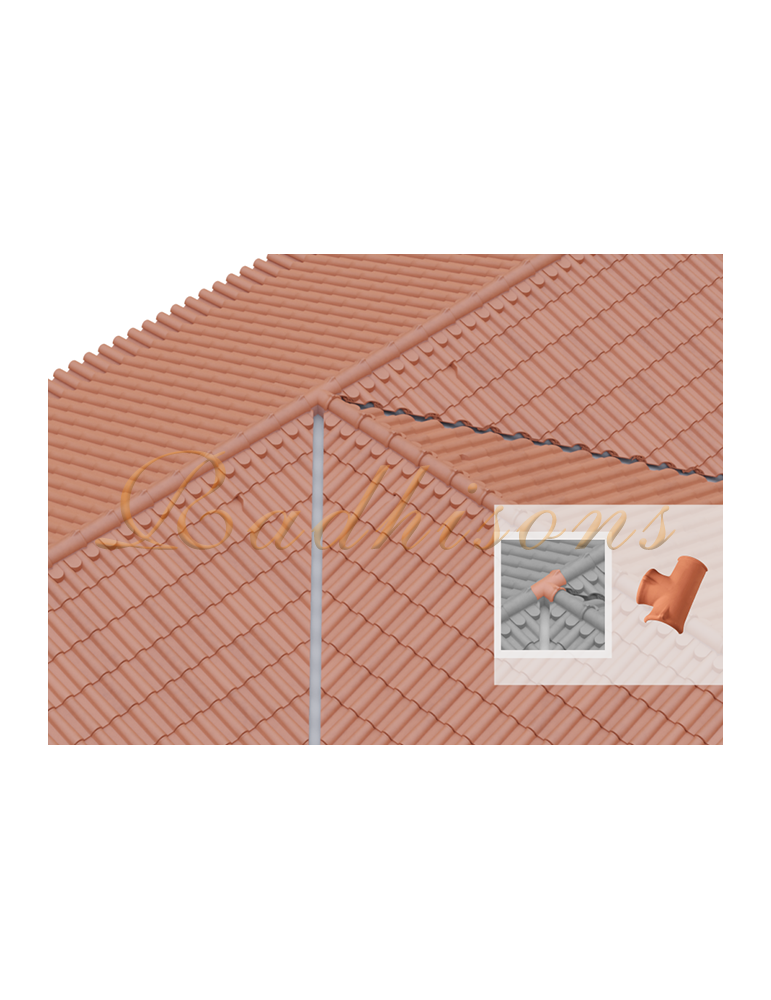 La rencontre 3 voies (T) portugaise en argile rouge naturelle est l’élément essentiel pour vos couvertures de toits, offrant à la fois robustesse et charme esthétique. Fabriquée en argile naturelle, cette pièce garantit une excellente résistance aux intempéries et une longévité remarquable, tout en respectant les styles traditionnels de toiture. Sa forme en T facilite le raccordement parfait de trois sections de tuiles, assurant ainsi une étanchéité parfaite et une finition soignée. Idéale pour les travaux de rénovation ou de construction neuve, cette rencontre s’intègre harmonieusement avec les tuiles portugaises classiques, apportant une touche authentique à votre maison. Optez pour un produit durable, facile à poser, et reconnu pour sa qualité supérieure.
